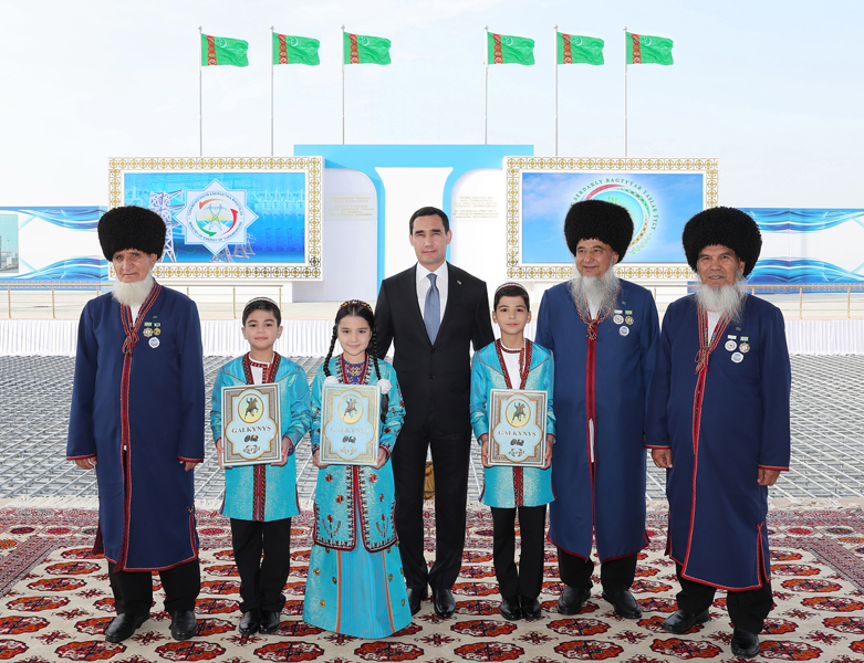 Balkan welaýatyndan wekilçilik edýän il sylagly ýaşuly dabarada çykyş edip, şu gün ýaşaýyş toplumynyň gurluşygyna badalga berilmeginiň ýurdumyzyň sebitlerini mundan beýläk-de durmuş-ykdysady taýdan ösdürmäge, halkymyzyň ýaşaýyş derejesini ýokarlandyrmaga gönükdirilip amala aşyrylýan giň gerimli özgertmeleriň üstünliklere beslenýändiginiň nobatdaky beýanydygyny belledi. Munuň özi Gahryman Arkadagymyzyň asylly başlangyçlarynyň Arkadagly Gahryman Serdarymyz tarapyndan yzygiderli dowam etdirilmeginiň netijesidir.