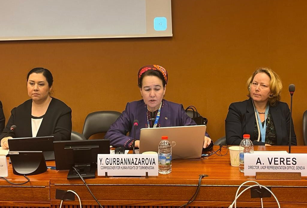 Türkmenistanyň Adalatçysy 11-nji dekabrda Birleşen Milletler Guramasynyň Adam Hukuklary boýunça Ýokary Komissarlygynyň edarasy tarapyndan guralan ýokary derejeli konferensiýada we hökümete degişli bolmadyk BDG guramanyň, şeýle hem INHR guramanyň, Gazagystanyň, Türkmenistanyň we Özbegistanyň milli adam hukuklary guramalarynyň şol bir wagtda geçiren çäresinde çykyş etdi.