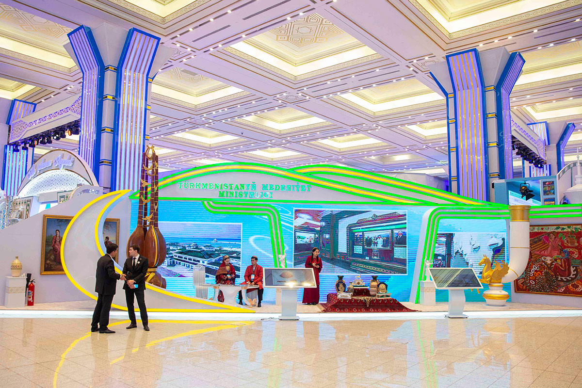 Medeniýet ulgamynyň sergi bölümi foruma gatnaşyjylaryň we myhmanlaryň köp sanlysynyň ünsüni özüne çekýär. Bu bölümiň ýanynda halkymyzyň agzybirligini, jebisligini, Watanymyzyň Garaşsyzlygyny arzuw eden beýik türkmen şahyry Magtymguly Pyragynyň belent heýkeli ýerleşdirilipdir.