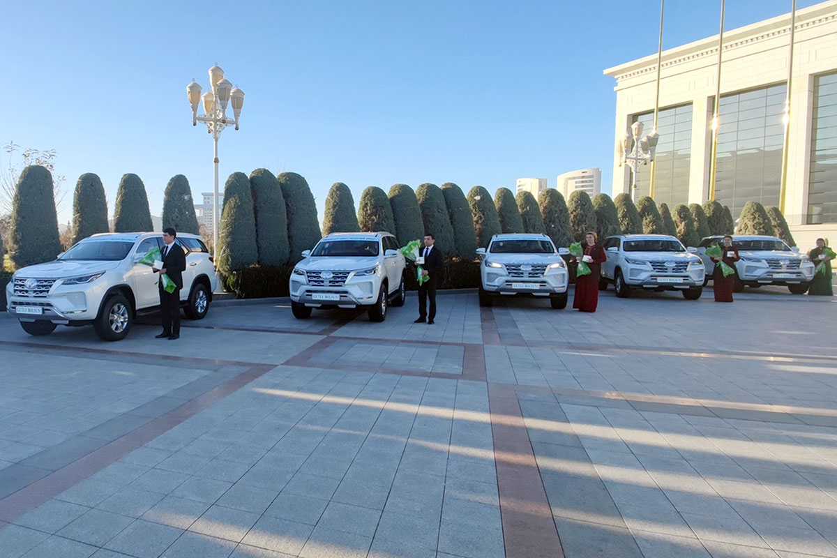 Türgenlere hem-de ýurdumyzyň tälimçi-mugallymlaryna sowgat hökmünde 2 sany «Toyota Camry V6» we 5 sany «Toyota Fortuner SR5» kysymly 2023-nji ýylda öndürilen awtoulagyň açarlary dabaraly ýagdaýda gowşuryldy.