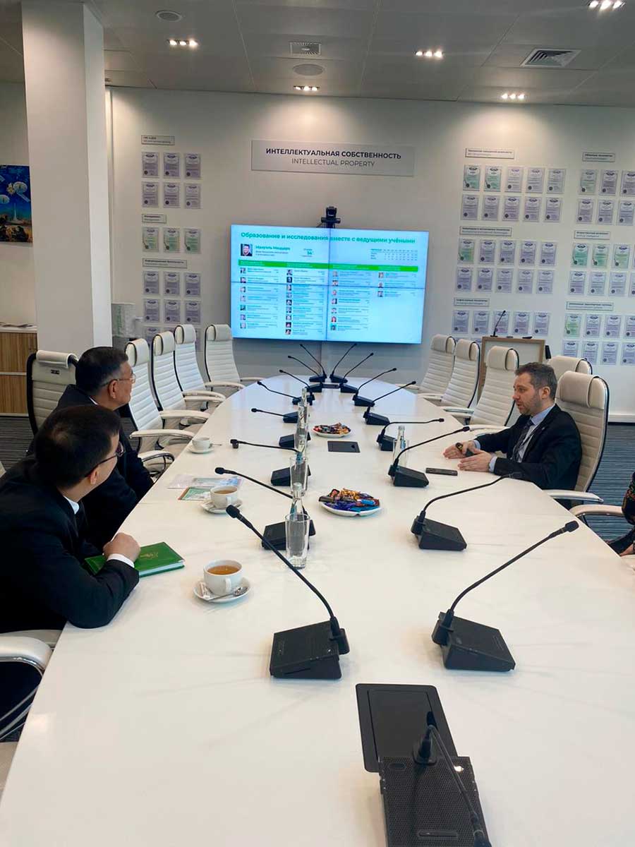 Türkmenistanyň Oguz han adyndaky Inžener-tehnologiýalar uniwersitetiniň rektory biotehnologiýa, nanotehnologiýa, nanobiotehnologiýa, himiýa tehnologiýasy, nebitgaz tehnologiýasy ulgamlarynda we beýlekilerde bilelikde işlemäge gyzyklanma bildirdi.