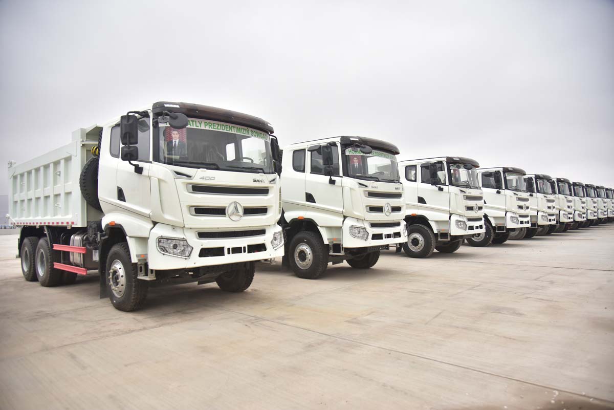 Döwlet Baştutanymyz binadan çykyp, sement zawodynyň direktoryna bu ýerdäki meýdançada hatara düzülen, täze önümçilikde işlediljek kuwwatly ýöriteleşdirilen tehnikalaryň açarlaryny gowşurdy.