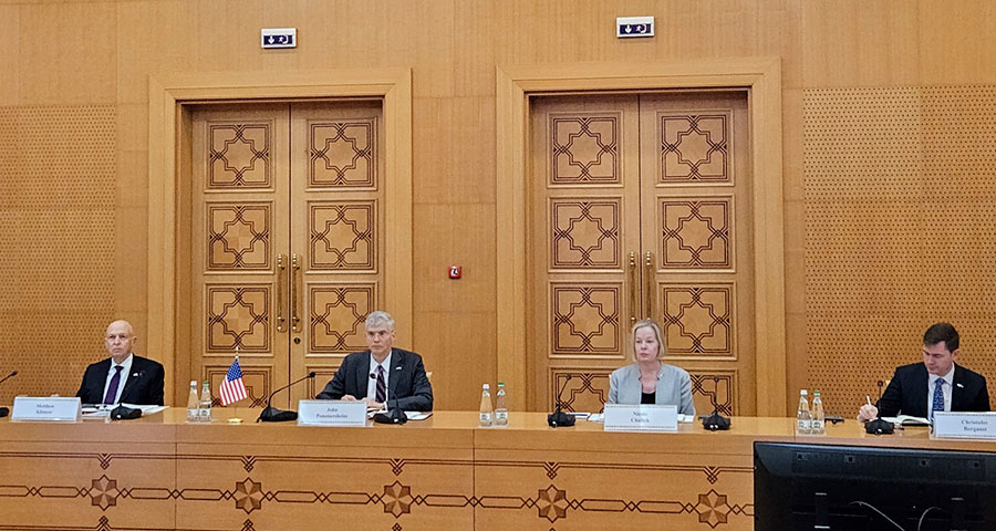 2024-nji ýylyň 14-nji aprelinde Türkmenistanyň Daşary işler ministrliginde Türkmenistan bilen ABŞ-nyň arasynda ýyllyk syýasy geňeşmeleriň nobatdaky tapgyry geçirildi. Gepleşikleriň barşynda türkmen wekiliýetine Türkmenistanyň Daşary işler ministri Raşid Meredow, amerikan wekiliýetine ABŞ-nyň Döwlet sekretarynyň Günorta we Merkezi Aziýa boýunça orunbasary Jon Pommerşaým ýolbaşçylyk etdi. Bu barada ýurdumyzyň daşary syýasat edarasy habar berýär.