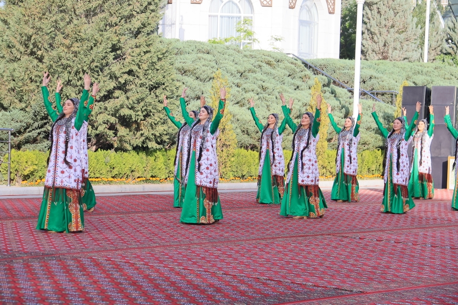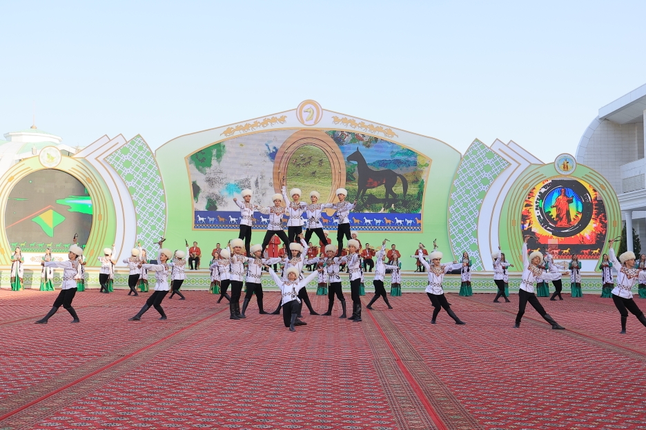 Baýramçylyk çapyşyklarynyň dowamynda bagşy-sazandalaryň çykyşlary ýaýbaňlandyryldy. Olaryň şöhratly geçmişimizi, häzirki döwrümiziň ägirt uly özgerişlerini wasp edýän aýdym-sazlary tomaşaçylara şatlyk paýlady.