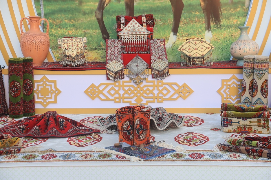 Aşgabat we Arkadag şäherleriniň, ýurdumyzyň welaýatlarynyň bu ýerde gurnan ak öýleri gadymy türkmen obasyny ýatladýar. Gelin-gyzlar sazlaryň owazy astynda haly dokaýarlar, tikinçilik işleri bilen meşgullanýarlar, keçe basýarlar. Şeýle hem bu ýerde täsin bezeg şaý-seplerini döredýän zergäriň iş pursady görkezilýär. Muzeý gymmatlyklary, häzirki zaman suratkeşleriniň eserleri-de sergilenýär. Halylarda, özboluşly heýkeltaraşlyk işlerinde, grawýuralarda, fotosuratlarda ajaýyp bedewler şekillendirilýär. Bedewleri baýramçylyga kybap bezemek üçin ajaýyp şaý-sep toplumlary bolsa türkmenleriň ýelden ýüwrük atlara goýýan çäksiz sarpasynyň güwäsidir.