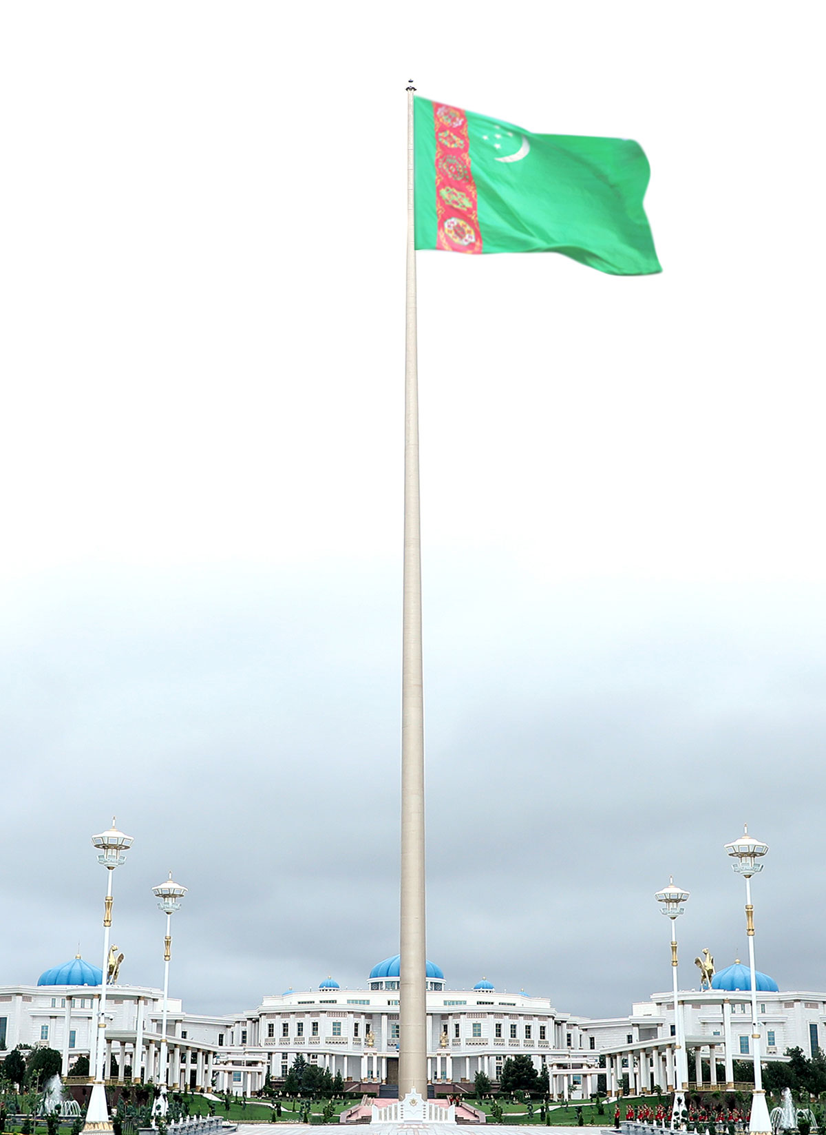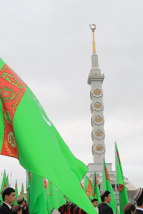 Konstitusiýa binasyna gül goýmak dabarasy tamamlanandan soňra, dabaralar Baş baýdak meýdançasynda dowam etdi. Bu ýerde dünýäde iň belent baýdak sütünleriniň biri ýerleşýär. 133 metr belentlikde Türkmenistanyň Döwlet baýdagy buýsançly parlaýar.