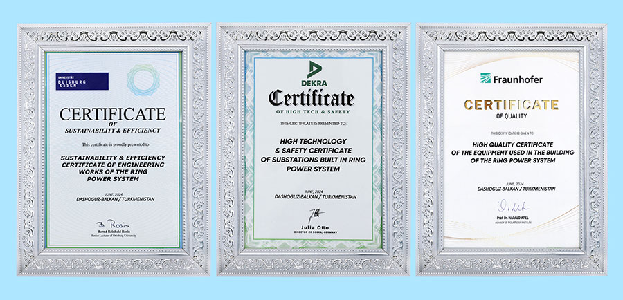 Wideofilm tamamlanandan soňra, daşary ýurtly myhmanlara söz berildi. Olar Türkmenistanyň energetika ministrine enjamlaryň we bitewi halkalaýyn energoulgamyň gurluşygynda alnyp barlan işleriň ýokary hilini tassyklaýan halkara güwänamalaryny gowşurdylar.