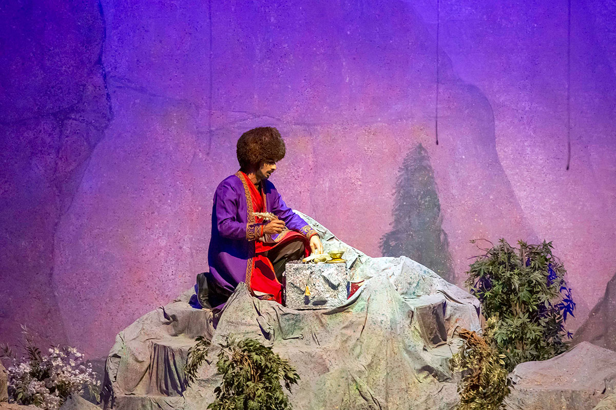 Magtymgulynyň ýaşlyk we gojalan döwürlerini Begenç Moşiýew we Türkmenistanyň at gazanan artisti Ýagmyr Gurbannazarow ýerine ýetirdiler. Operada şahyryň durmuş ýolunyň pursatlary – Şirgazy medresesinde okan döwri, Hywa hany bilen baglanşykly waka, Meňli bilen duşuşygy, Magtymgulynyň ähli türkmen taýpalaryna duşmana garşy birleşmäge çagyryşy beýan edilýär. Olar her bir türkmenistanla mälimdir, ýöne sahna ussatlarynyň olary beýan edişi tomaşaçylary özüne maýyl etdi.