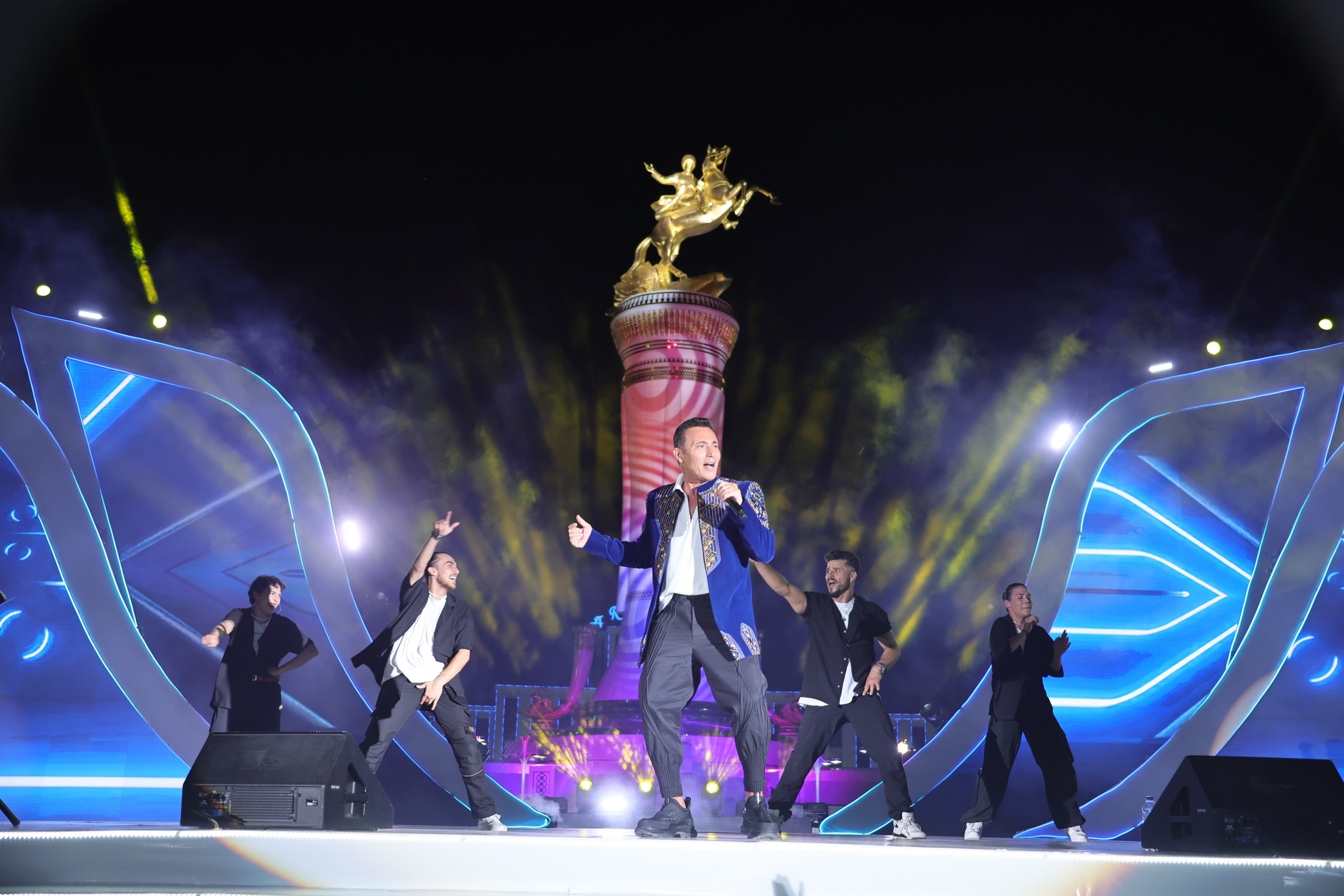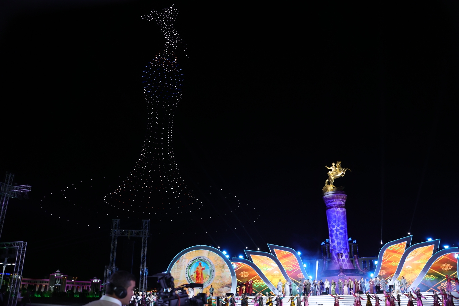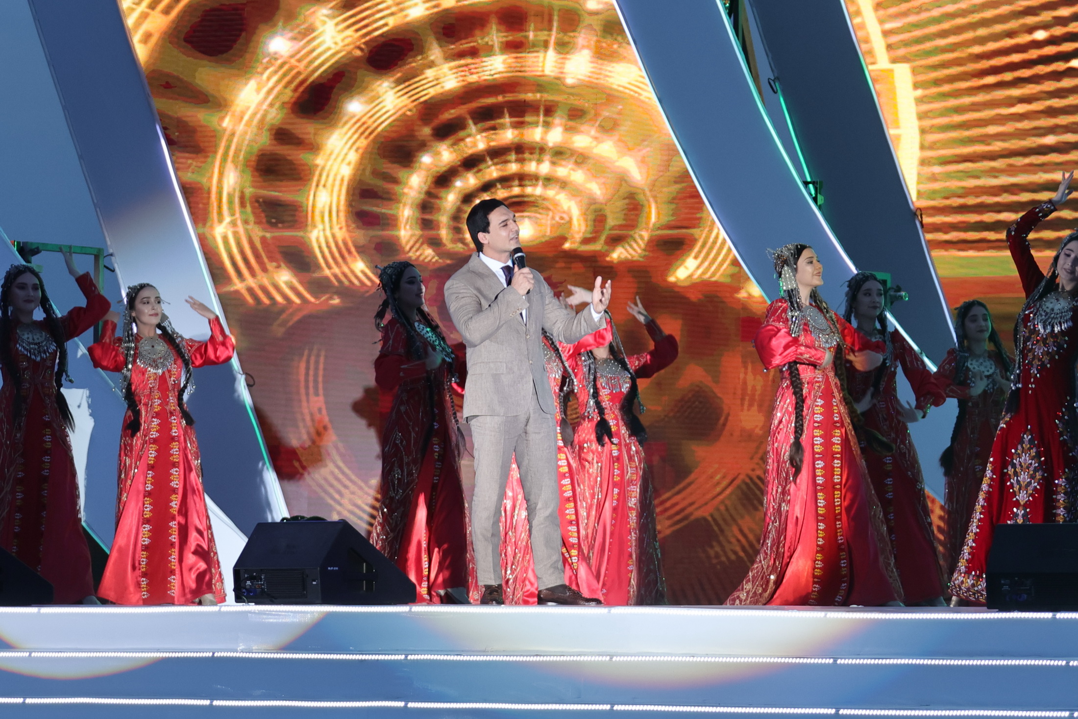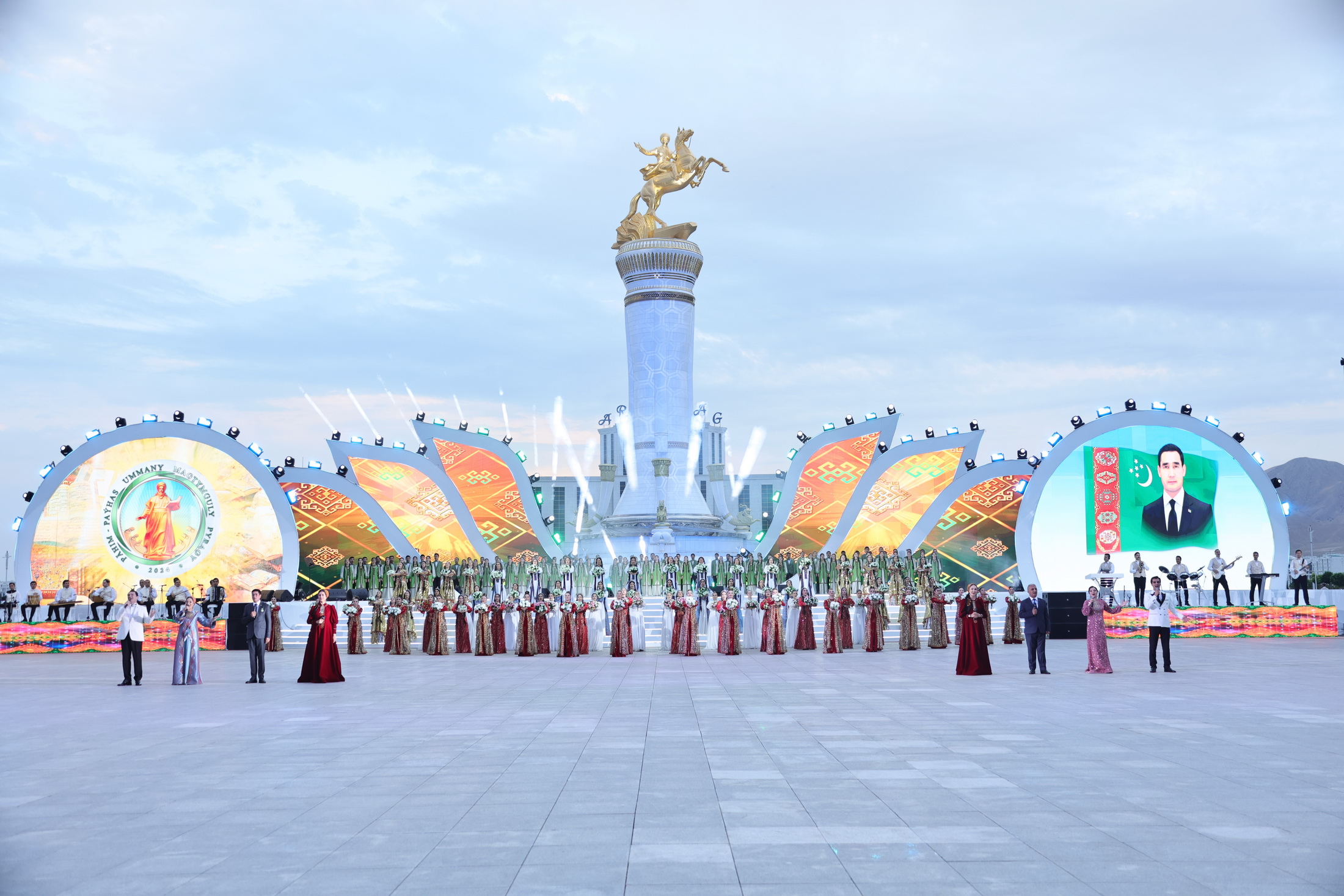 ...Agşam «Arkadag Binasynyň» öňündäki baýramçylyk meýdançasynda ýurdumyzyň we daşary ýurtlaryň sungat ussatlarynyň konserti boldy.