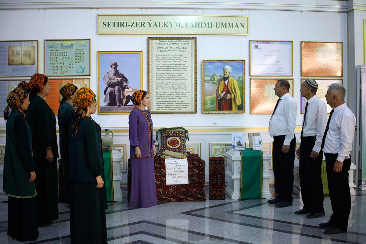 Maslahatda beýik Magtymguly Pyragynyň doglan gününiň 300 ýyllygy mynasybetli ýurdumyzda geçirilýän çuňňur mazmunly çäreler, mermer paýtagtymyz Aşgabat şäheriniň eteginde «Magtymguly Pyragy» medeni-seýilgäh toplumynyň açylmagy, şahyryň ýubileýiniň dünýä jemgyýetçiligi tarapyndan giňden bellenilmegi, umumadamzat ähmiýetli goşgularynyň dünýä derejesinde wagyz edilmegi baradaky çykyşlar hem bu ýere ýygnananlarda aýratyn uly täsirler galdyrdy. Soňra dabara gatnaşyjylaryň beýik akyldaryň döredijiligine, durmuş ýoluna, şahyryň ýaşan döwrüni şöhlelendirýän milli mirasymyza degişli sergide ýerleşdirilen gymmatlyklar bilen tanyşmaklary, şygryýet muşdaklaryny nusgawy şahyryň keremli dünýäsine seýle çykardy.