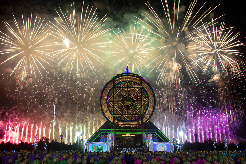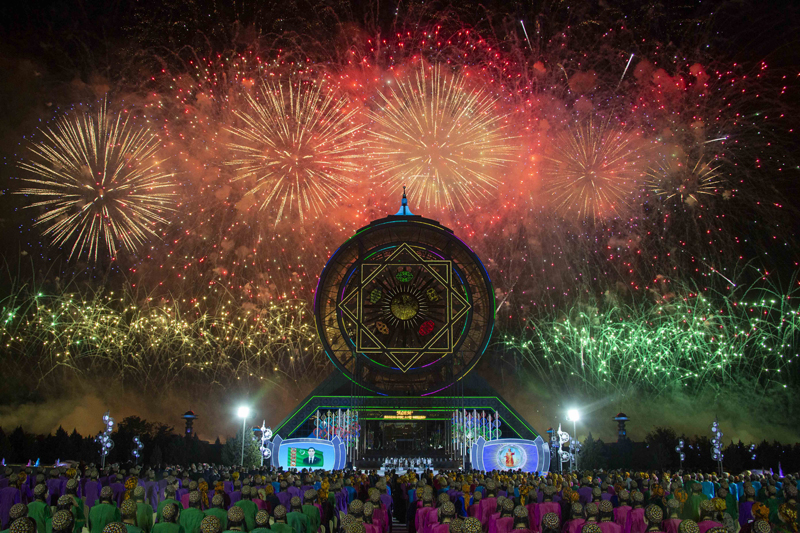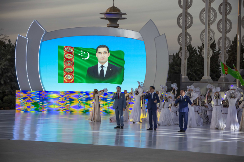 Asylly däbe görä, milli senenamamyzyň şanly senesi mynasybetli esasy dabaralar toý lybasyndaky köp sanly myhmanlaryň gatnaşmagynda Döwlet münberi toplumynyň öňündäki meýdançada ýaýbaňlandyryldy. Hökümet münberiniň öňündäki meýdançada Milli goşunymyzyň harby gullukçylary hatara düzüldiler.
