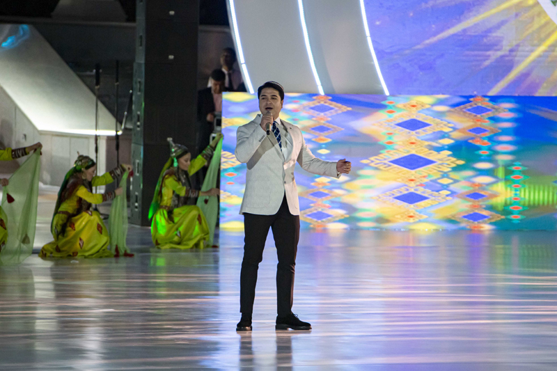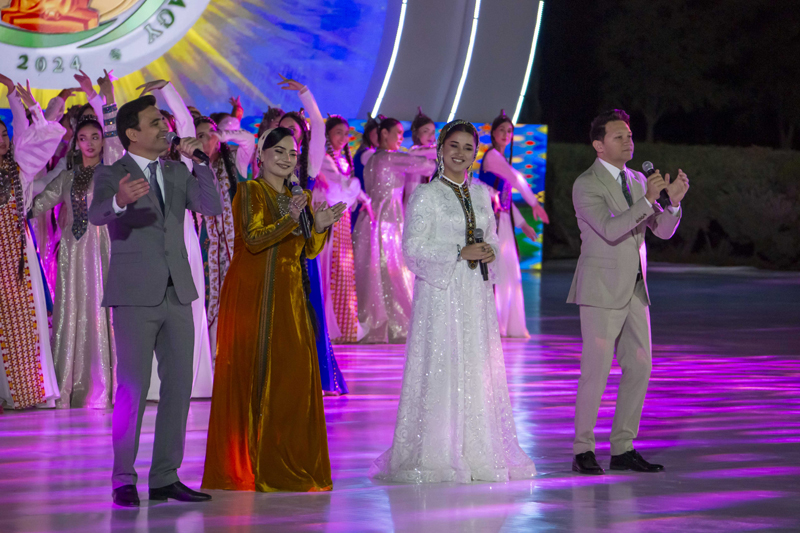 Atlylaryň çykyşlary we baýdakly çapyksuwarlaryň ýörişi ornuny “Pähim-paýhas ummany Magtymguly Pyragy” atly sahnalaşdyrylan edebi-sazly çykyş bilen çalyşdy. Meýdança tans toparlary, türkmen halkynyň, şeýle hem dünýäniň beýleki halklarynyň görnükli şahsyýetleriniň keşplerini janlandyrýan teatr artistleri çykdylar. Olar häzirki nesillere watançylyk mazmunyndaky goşgy setirleri we aýdymlar bilen ýüzlenýärler.