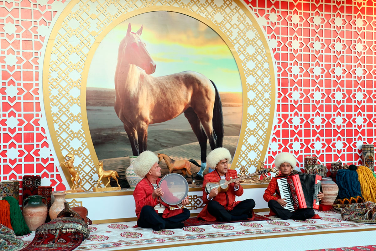 Toplumyň çäginde ahalteke bedewleriniň hormatyna milli amaly-haşam sungatynyň eserleriniň, suratlaryň, halk senetçiliginiň sergisi ýaýbaňlandyryldy. Girelgeden merkeze çenli uzap gidýän ýerde guralan sergide halkymyzyň milli gymmatlyklary, döredijilik zehini öz beýanyny tapdy. Muzeý gymmatlyklaryny hem öz içine alýan giň gerimli sergi gadymy döwürlerden şu güne çenli döredijilik ylhamynyň çeşmesi bolup gelen meşhur ahalteke atlaryna bagyşlandy.