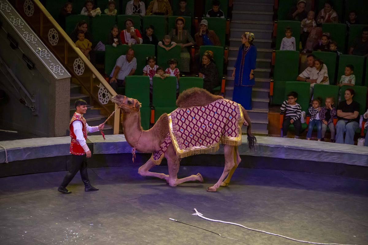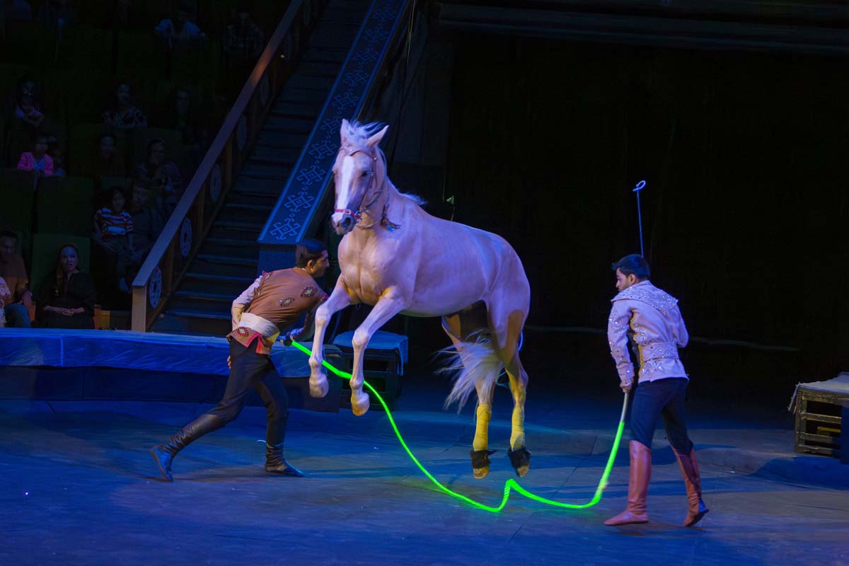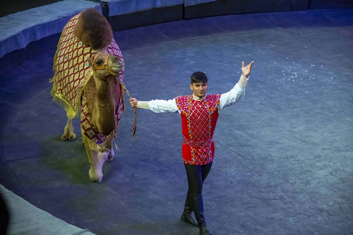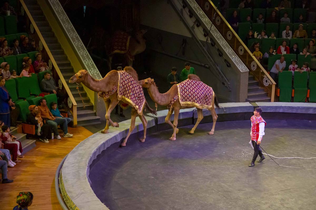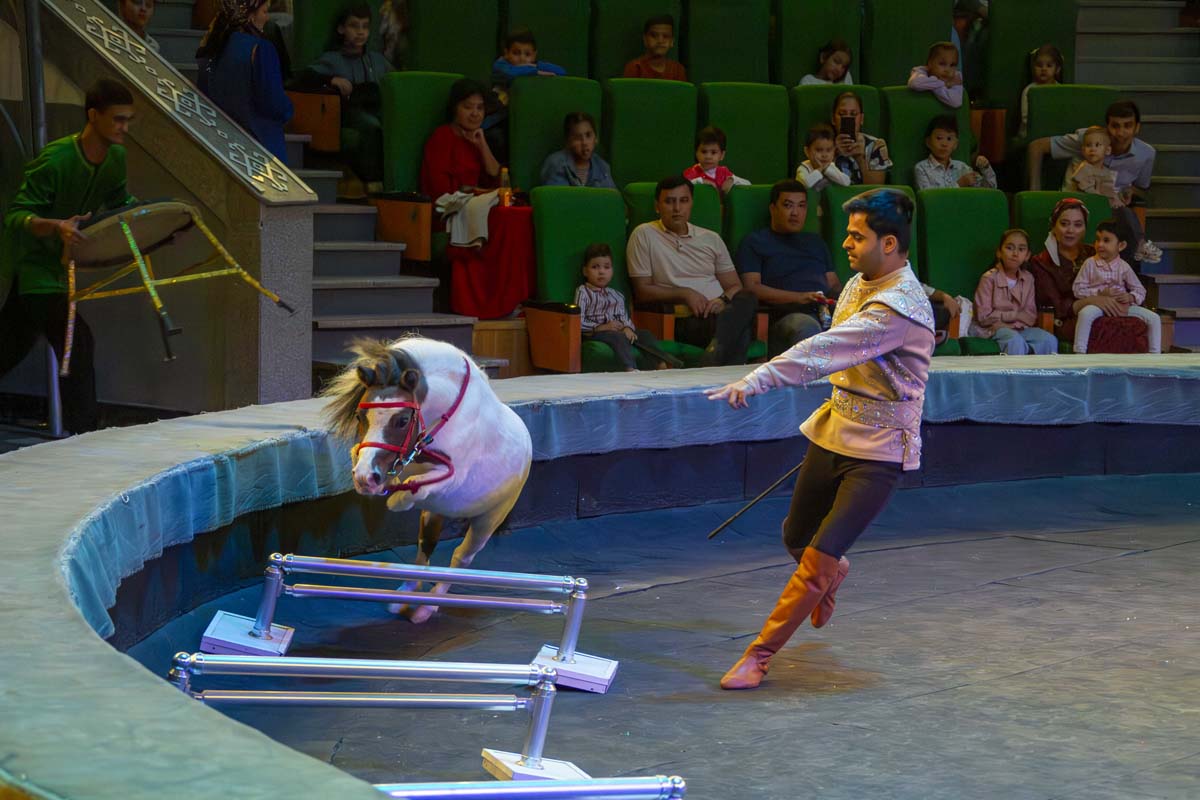 Haýwanlara tälim beriji Liliana Ýusupowanyň ýolbaşçylygynda dört maýmynyň çykyşam tomaşaçylary özüne bendi etdi. Olaryň biri poni aty çapdy, soňra bolsa beýleki maýmynlary hem poniň arkasyna mündirip, olary meýdançada aýlady.