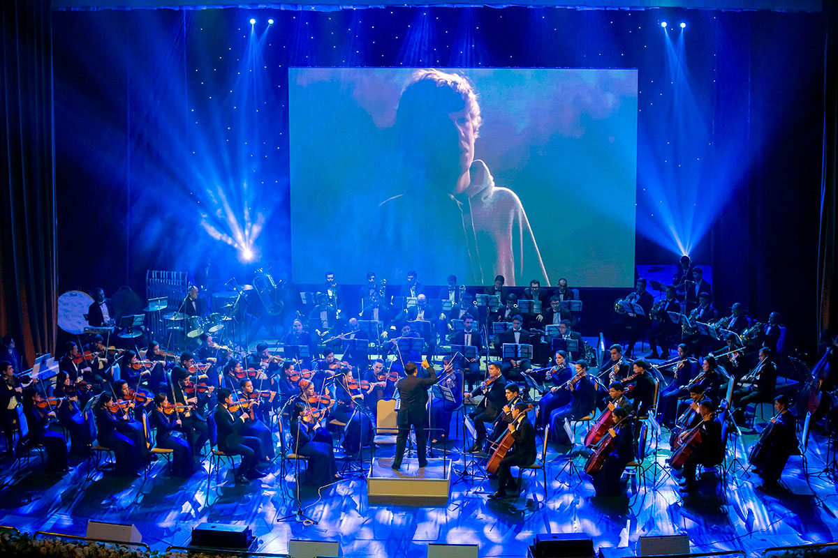 Türkmenistanyň at gazanan artisti Resul Gylyjowyň ýolbaşçylygyndaky Türkmenistanyň Döwlet simfoniki orkestriniň ýerine ýetirmeginde «Gaýtyn planetaly», «Ýura eýýamynyň seýilgähi», «Şindleriň sanawy», «Terminal», «Ýyldyzlar söweşleri» we beýleki sazlar ýaňlandy. Kähalat orkestr sazandalarynyň keşbi film gahrymanlary bilen utgaşyp, howply, haýran galdyryjy ýagdaýlary şekillendirýärdi. Bu bolsa filmleriň sazlaryna döredijilik äheň berýärdi.