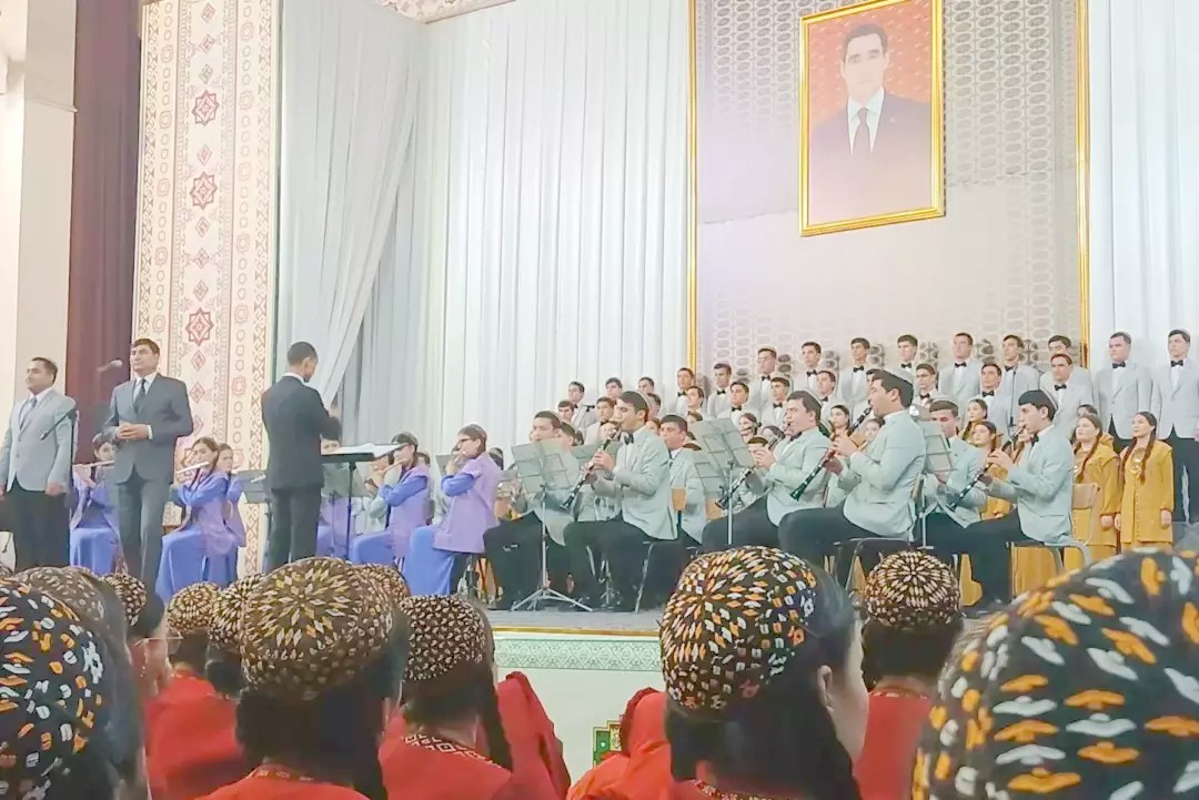 Konsertde «Galkynyş» simfoniki orkestri üçin «Desantçylar» filminden kompozisiýa ýerine ýetirildi. «Saz taryhy we saz nazaryýeti» bölüminiň talyby Yhlas Artykow halypasynyň hatyrasyna «Rejep Rejebowa bagyşlama» saz kompozisiýasyny hödürledi.