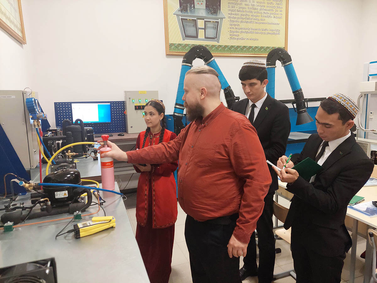 Azyk we ýangyç-energetika pudaklary üçin hünärmen taýýarlaýan ýokary okuw mekdebiň «kompressor we sowadyjy desgalar» bölüminiň talyplary we mugallymlary üçin UNIDO-nyň wekili rus hünärmeni Aleksandr Çuhçiniň gatnaşmagynda okuwlar hem amaly sapaklar geçirildi. Tebigy sowadyjy serişdeleriň, ýagny ammiakFyň, butanyň, izobutanyň, kömürturşy gazynyň, propileniň mümkinçilikleri we olary ulanmagyň howpsuzlyk düzgünleri barada-da aýdyldy.