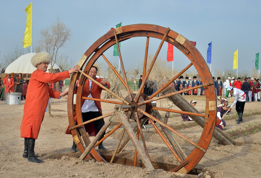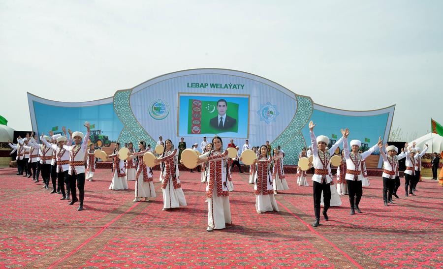 Ekiş möwsüminiň başlanmagy mynasybetli guralan dabaralaryň çäklerinde oba hojalyk tehnikalarynyň, gaýtadan işleýän kärhanalarda öndürilýän önümleriň sergileri guraldy. Welaýatlaryň aýdym-saz, folklor-tans toparlarynyň çykyşlary pagtaçy kärendeçiler üçin ajaýyp döredijilik sowgady boldy.