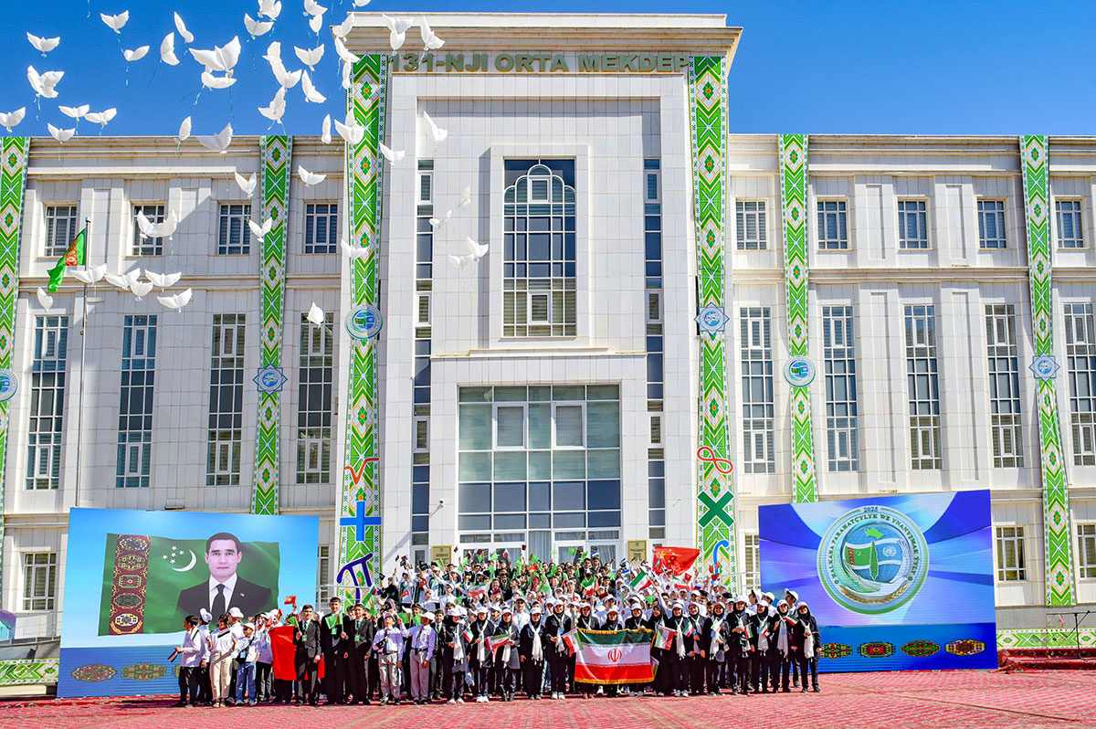 Paýtagtymyzyň myhmanlarynyň garşylanylyşy halkymyza mahsus myhmansöýerlik we göwnaçyklyk bilen ýokary derejede guraldy. Olimpiadanyň açylyşy türkmen dilinde hem-de gatnaşyjy ýurtlaryň dillerindäki aýdym-sazlar bilen utgaşyp, halklaryň arasyndaky dostlugy we parahatçylygy alamatlandyrdy. Mekdebiň eýwanynda sergi guralyp, daşary ýurtlulary milli bilim ulgamyndaky gazanylanlar, dürli ýyllarda türkmen okuwçylarynyň okuwda we halkara bäsleşiklerindäki üstünlikleri, çagalar çeperçilik mekdepleriniň okuwçylarynyň döredijilik taslamalary hem-de işleri bilen tanyşdyrdy.